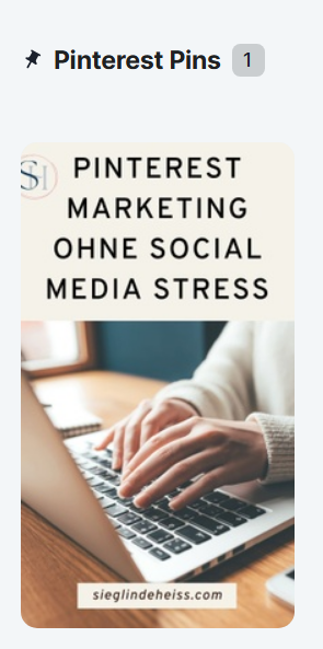 - Pinterest Guide für Selbständige – sichtbar ohne Social Media Hier erkläre ich Schritt für Schritt, wie Coaches, Berater:innen und Dienstleister:innen Pinterest nutzen können, um langfristig sichtbar zu werden – ganz ohne Dauer-Online-Sein. Ein kompakter Leitfaden für Pinterest-Einsteiger:innen.